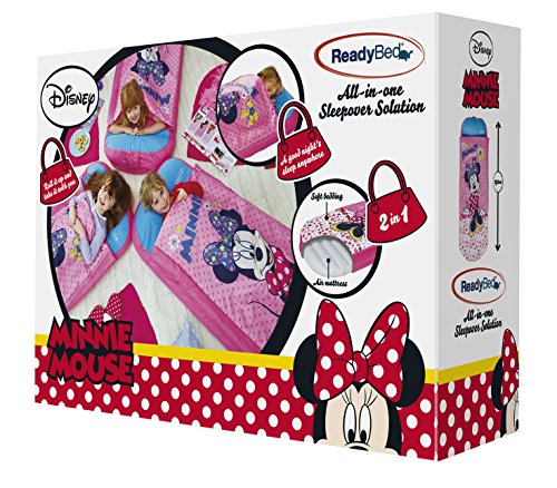 [ln] 2 in 1 Disney Minnie Mouse airbed and sleeping bag from ReadyBed [ln] [ln]- [ln] With pump and handy carry bag included, you'll go from bag to bed in minutes [ln] [ln]