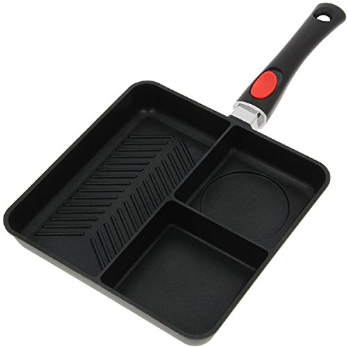 [ln] With three different sections, this pan will accommodate beans, egg and sausage / bacon all at the same time. [ln] [ln]- [ln] Removable handle for easy storage [ln] [ln]
