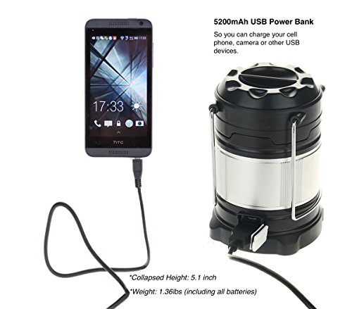 - [ln] SMART COLLAPSIBLE DESIGN - The easy On/Off operation by simply opening and closing the rechargeable lantern, 5inch height when collapsed ,light weight of only 14 ounces, easy for backpack; [ln] [ln]