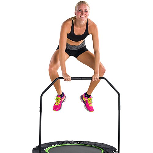 [ln] Low impact cardio workout effectively targeting our larger muscle groups | Folds up for quick and easy storage [ln] [ln]- [ln] Stability handle with foam slip resistant grips | 4 flip-out legs convert the trampoline into a rebounder or incline jumping workout [ln] [ln]