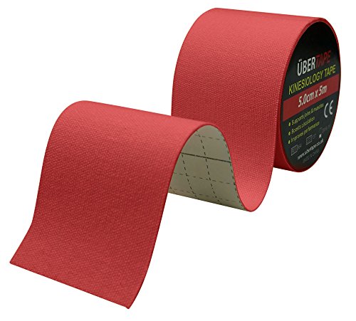 [ln] UBERTAPE IS A PROFESSIONAL GRADE elastic therapeutic tape. It flexes with your muscles, improves blood circulation to the area applied and reduces the need for bandages, braces or other restrictive tape. Super large 35m x 5cm roll. [ln] [ln]- [ln] SUPER STICKY KINO TAPE with superior durability. UberTape is manufactured to stay put! Once this safe, high-tech kinesio taping adhesive beds down, it continues to provide excellent adhesion despite both sweat and water (shower/bath) doing their best to loosen its grip. Our strong adhesive tape will outlast any other supplier or your money back! [ln] [ln]